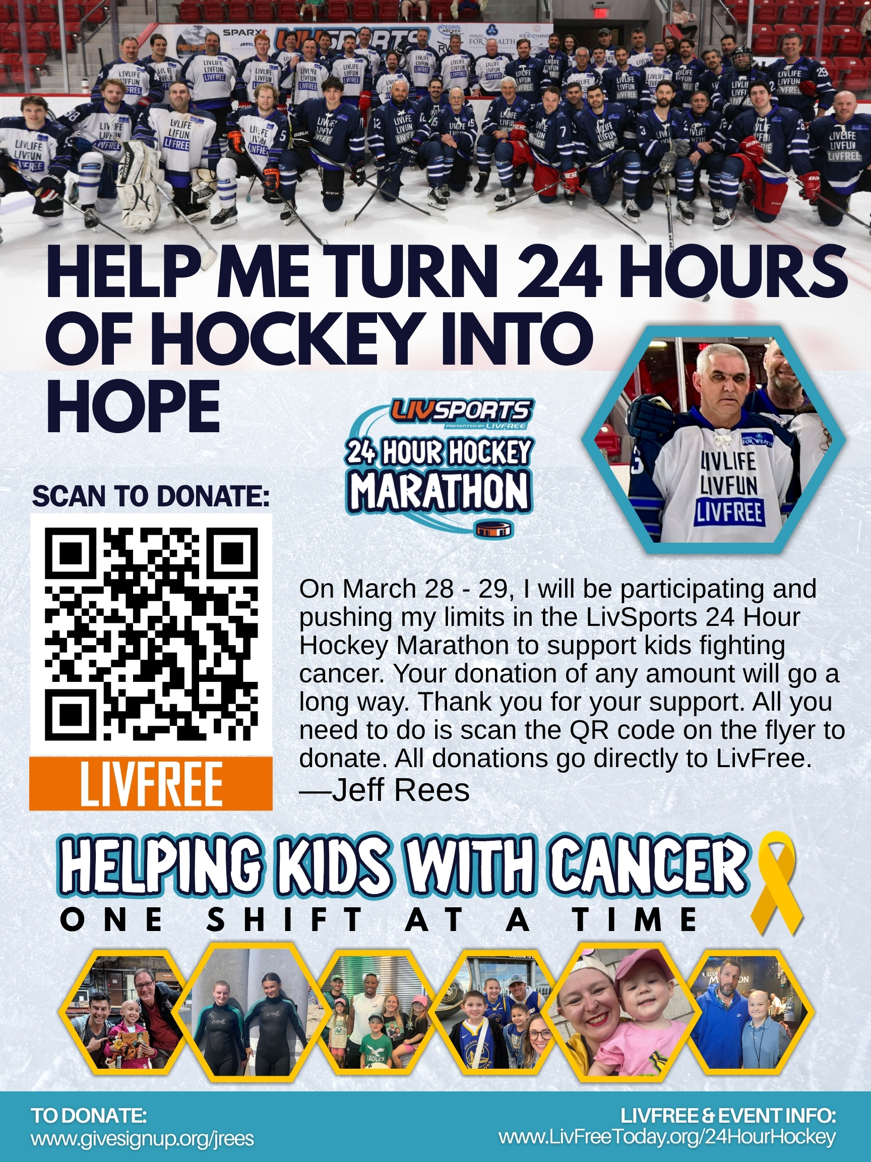 LivFree is a non profit organization that hosts events that raise money to support families with children suffering from pediatric cancers